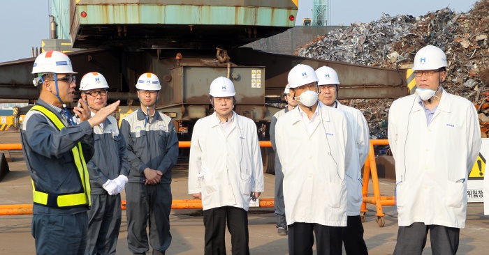 (인천=포커스뉴스) 김용환 원자력안전위원회 위원장이 16일 인천시 현대제철 인천사업소를 방문해 재활용고철 방사선감시기 운영 현장을 시찰하고 있다. <사진제공=원자력안전위원회>