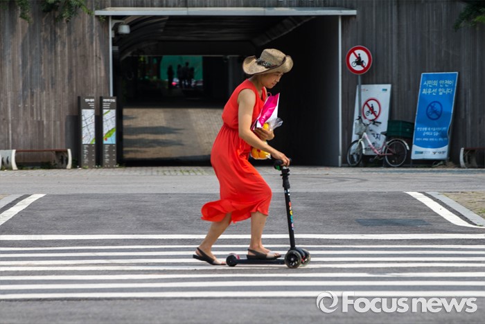 '얘들아, 엄마가 싱싱카 좀 탈게'
