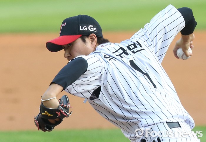 (서울=포커스뉴스) 17일 서울 잠실구장에서 열린 2016 프로야구 KIA-LG 경기에서 1회초 LG 선발투수 우규민이 투구하고 있다.