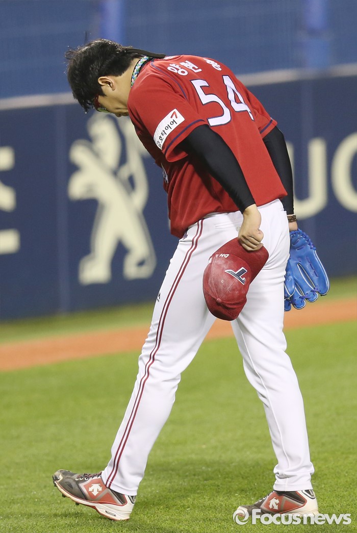 (서울=포커스뉴스) 17일 서울 잠실구장에서 열린 2016 프로야구 KIA-LG 경기에서 KIA 투수 양현종이 7회말 무사 1루에서 교체돼 덕아웃으로 들어가며 팬들의 환호에 고개 숙여 인사하고 있다.