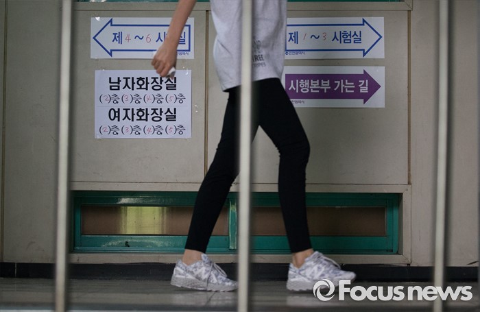 (인천=포커스뉴스) 2016년 제2회 지방공무원 임용 필기시험이 실시된 18일 오전 인천 연수구 청학공업고등학교에서 한 수험생이 시험실으로 들어서고 있다.