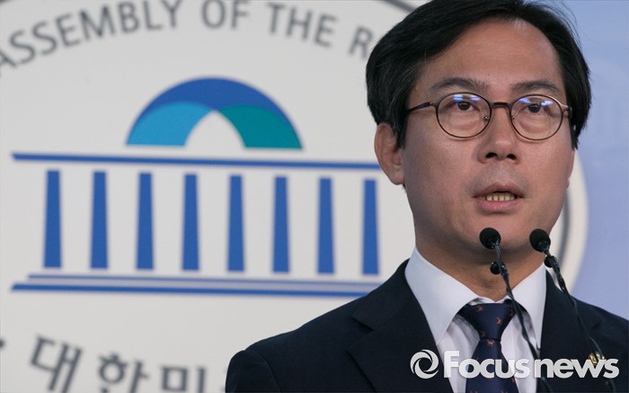 | △ 복당 결정 관련 브리핑하는 김영우 |