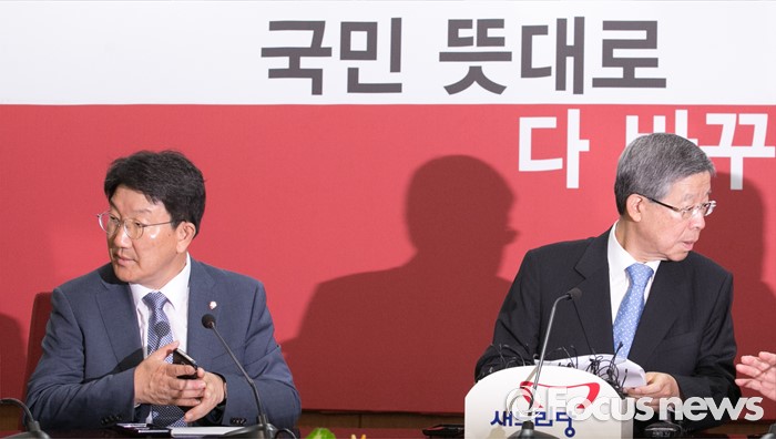 (서울=포커스뉴스) 20일 오전 서울 여의도 새누리당사에서 열린 혁신비상대책위원회의에 참석한 김희옥(오른쪽) 혁신비대위원장과 권성동 사무총장이 각각 참석자들과 대화하고 있다.