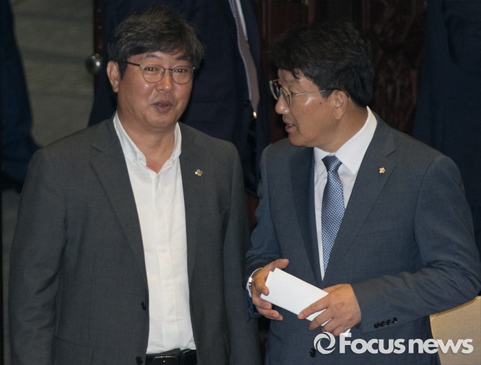 (서울=포커스뉴스) 20일 오전 서울 여의도 국회에서 열린 343회 국회(임시회) 3차 본회의에 참석한 권성동(오른쪽) 새누리당 사무총장과 이춘석 더불어민주당 의원이 대화하고 있다.