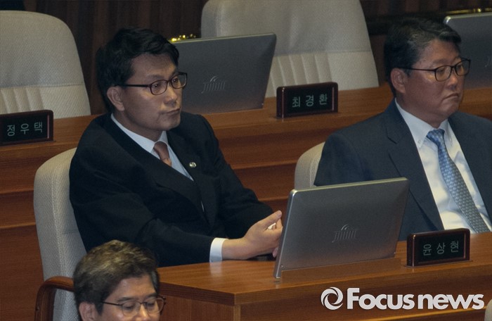 (서울=포커스뉴스) 20일 오전 서울 여의도 국회에서 열린 343회 국회(임시회) 3차 본회의에 참석한 윤상현(왼쪽) 새누리당 의원이 자리하고 있다.