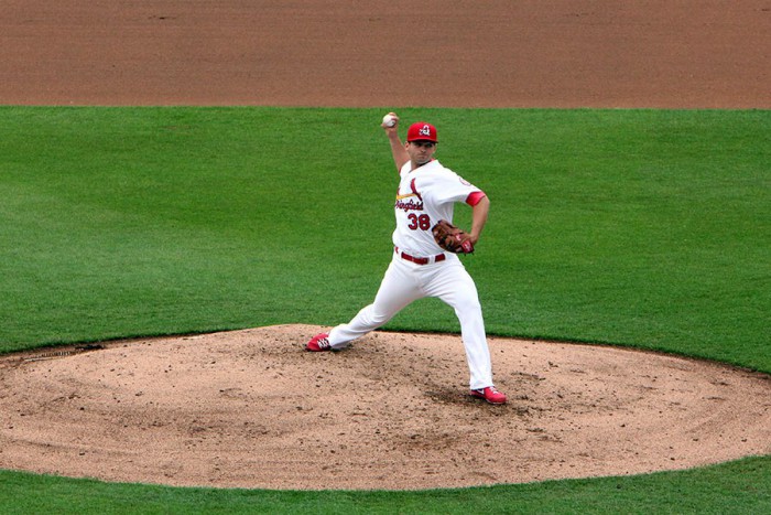 맥그레거는 21일 고척돔에서 선수단과 상견례를 가진 뒤 팀에 합류한다.프로야구 넥센이 새 외국인투수 스캇 맥그레거를 영입했다. 맥그레거가 세인트루이스 산하 마이너리그팀에서 투구하는 모습. <사진제공=넥센 히어로즈>