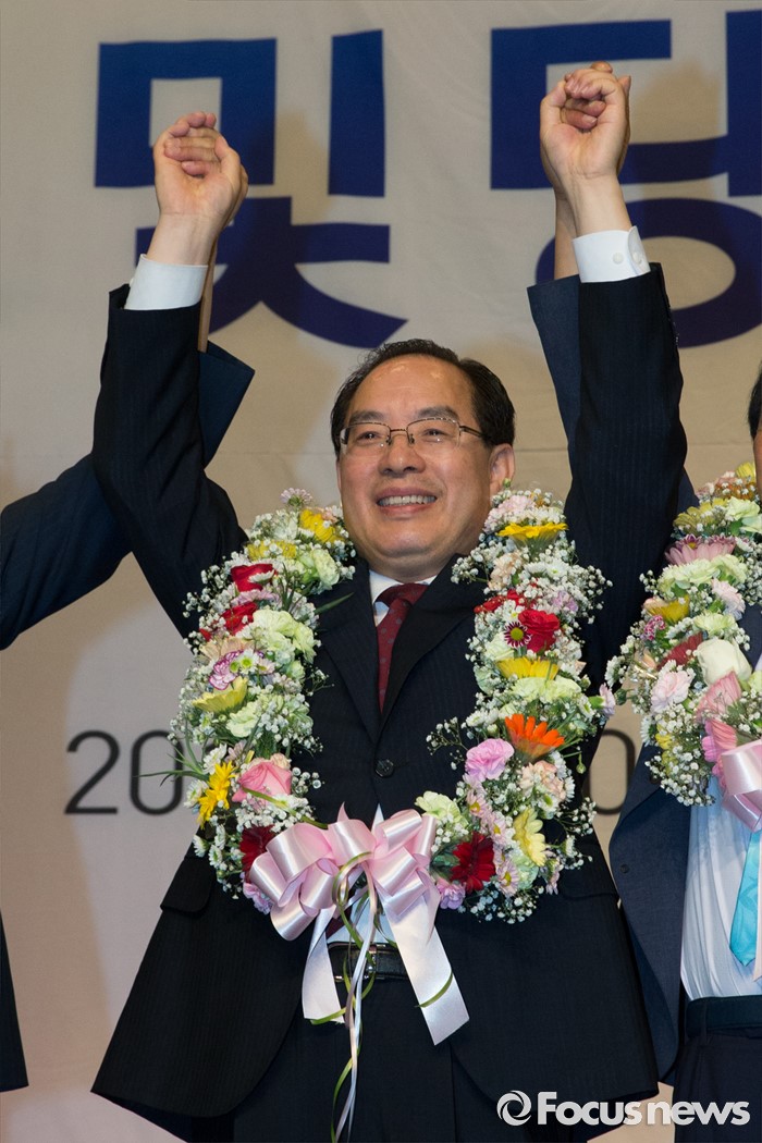 기뻐하는 하윤수 신임 회장