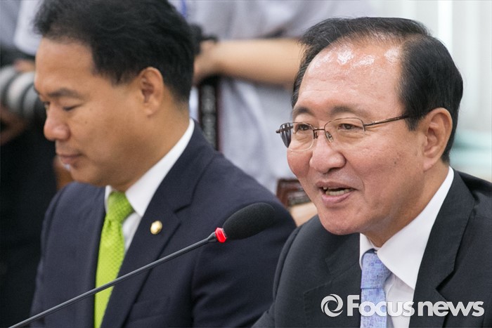 (서울=포커스뉴스) 20일 오전 서울 여의도 국회에서 열린 법제사법위원회 전체회의에 참석한 노회찬 정의당 원내대표가 인사말을 하고 있다.