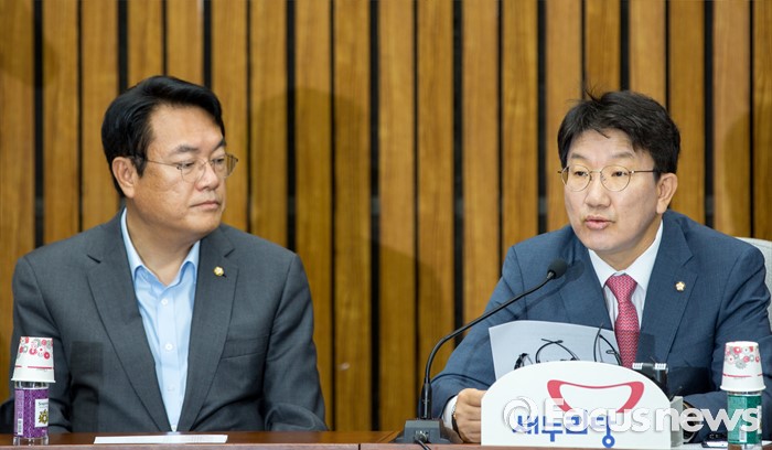 (서울=포커스뉴스) 권성동 새누리당 사무총장이 21일 오전 서울 여의도 국회에서 열린 원내대책회의에 참석해 모두발언 하고 있다.