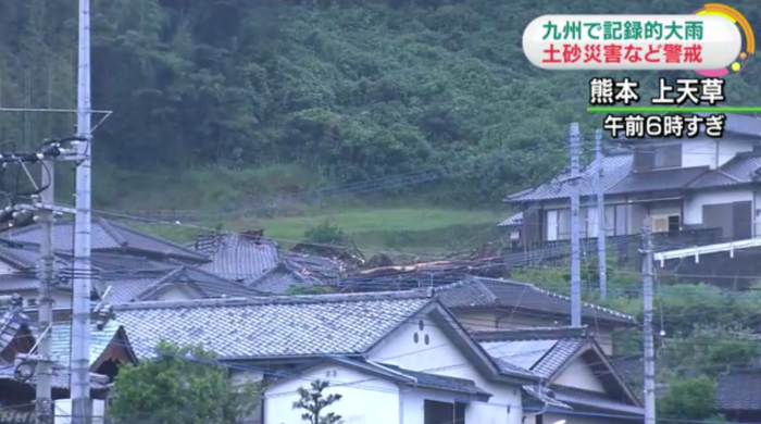 이번 폭우는 규슈 북부 장마전선의 따뜻하고 습한 공기에 의해 일어났다. 폭우가 시작되고 나서 일본 기상청은 "지난 4월14일 구마모토현에 발생한 진도 7 강진 이후 잇따른 여진으로 지반이 약화된 상태"라고 산사태 경계령을 내린바 있다. 구마모토현은 주민 1만3000여 명에게 피난 권고나 지시를 내렸다.일본 구마모토현에서 19일 새벽부터 시작된 폭우로 20일 밤 산사태가 일어났다. 피해 현장 보도에서 인근 주택이 내려 앉은 것을 확인할 수 있다. <사진출처=일본 NHK 영상 갈무리>