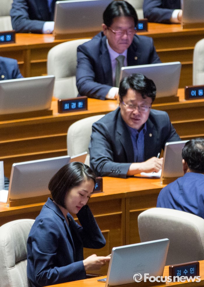 (서울=포커스뉴스) 김수민 국민의당 의원이 21일 오전 서울 여의도 국회에서 열린 본회의에 참석해 국회사무총장 임명승인안 투표를 기다리고 있다.