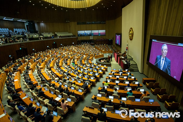 (서울=포커스뉴스) 김종인 더불어민주당 비상대책위 대표가 21일 오전 서울 여의도 국회에서 열린 본회의에 참석해 교섭단체대표 연설 하고 있다.