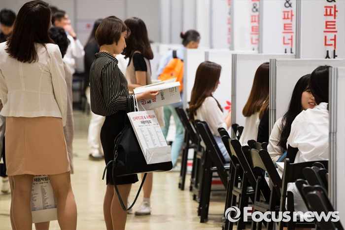 (서울=포커스뉴스) 21일 오후 서울 강남구 코엑스 D2홀에서 열린 신세계그룹&파트너사 채용박람회에서 구직자들이 희망 부스를 둘러보고 있다.