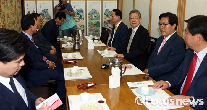 (서울=포커스뉴스) 김희옥 새누리당 혁신비대위원장이 21일 오후 서울 여의도 한 식당에서 초선 의원들과의 오찬에 앞서 인사말을 하고 있다.