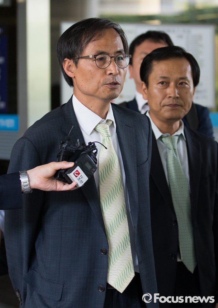 (서울=포커스뉴스) 천낙붕 민주 사회를 위한 변호사모임 소속 변호사가 21일 오후 서울 서초구 서울중앙지방법원에서 국가정보원 상대 북한 식당종업원 인신구제청구 1차 심문기일에 참석 전 취재진 질문에 답변하고 있다.