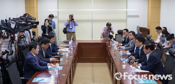 (서울=포커스뉴스) 동남권 신공항 입지발표를 앞두고 발표 중계방송 시청을 위해 모인 새누리당 김세연, 김도읍 등 부산지역 의원들이 21일 오후 서울 여의도 국회의원회관에서 신공항 선정 발표를 기다리고 있다.