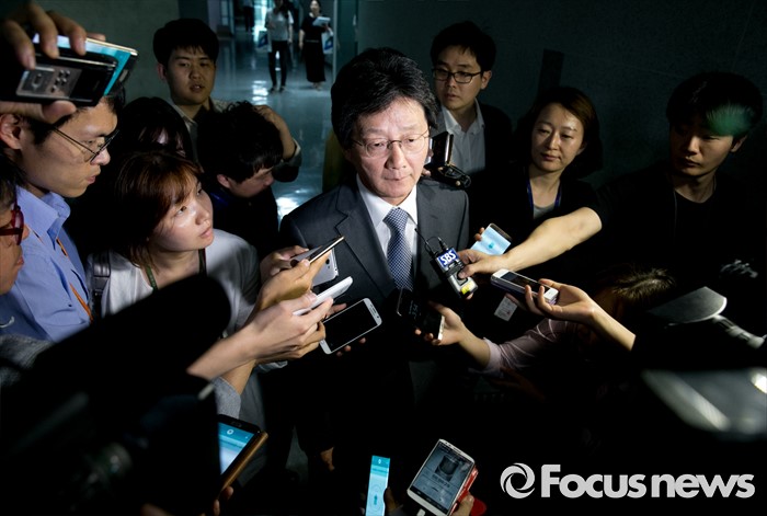 (서울=포커스뉴스) 유승민 새누리당 의원이 21일 오후 서울 여의도 국회 의원회관 윤재옥 의원실에서 열린 대구 지역 의원모임에 참석해 영남권 신공항 결과 발표를 지켜본 뒤 취재진 질문에 답하고 있다.