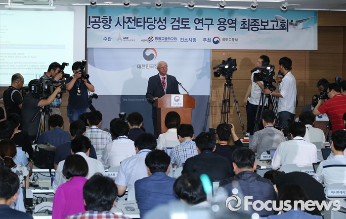 정부 발표에 승복하고 지역 여론 수렴 뒤 다시 입장을 발표할 것이냐는 질문에 윤 의원은 "전반적으로 상황이 오늘 발표된 시점에서 더 이상 지역민심을 수렴하기 전에 이런저런 이야기 하는 것은 시기적으로 맞지 않다고 생각한다"고 말을 아꼈다.장 마리 슈발리에 프랑스 파리공항공단자회사 ADPi 수석엔지니어가 21일 오후 세종시 정부세종청사 국토교통부 브리핑실에서 열린 동남권 신공항 타당성 검토 연구 최종 보고회에서 입지선정 결과를 발표하고 있다. 2016.06.21 김기태 기자