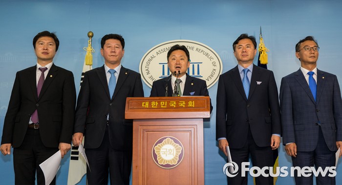 (서울=포커스뉴스) 21일 오후 서울 여의도 국회 정론관에서 최인호 더불어민주당 의원이 영남권 신공항 결과 발표 관련 기자회견을 하고 있다. 왼쪽부터 김해영, 박재호, 최인호, 김영춘, 전재수 의원.