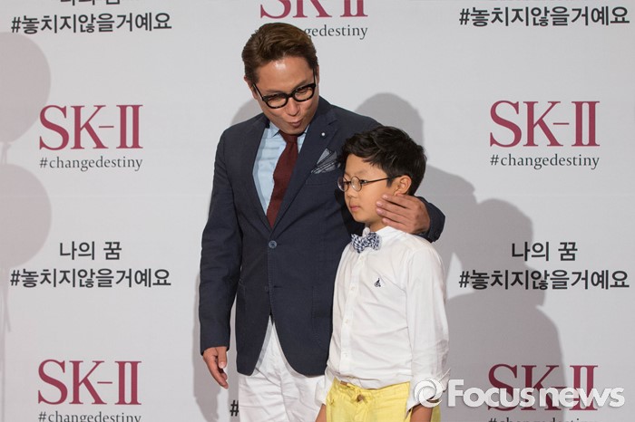 (서울=포커스뉴스) 가수 윤종신-윤라익 부자가 21일 오후 서울 삼성동 그랜드 인터컨티넨탈 호텔에서 열린 'SK-II 나의 꿈 #놓치지않을거예요' 캠페인 런칭 행사에 참석, 포토월 앞에서 포즈를 취하고 있다.