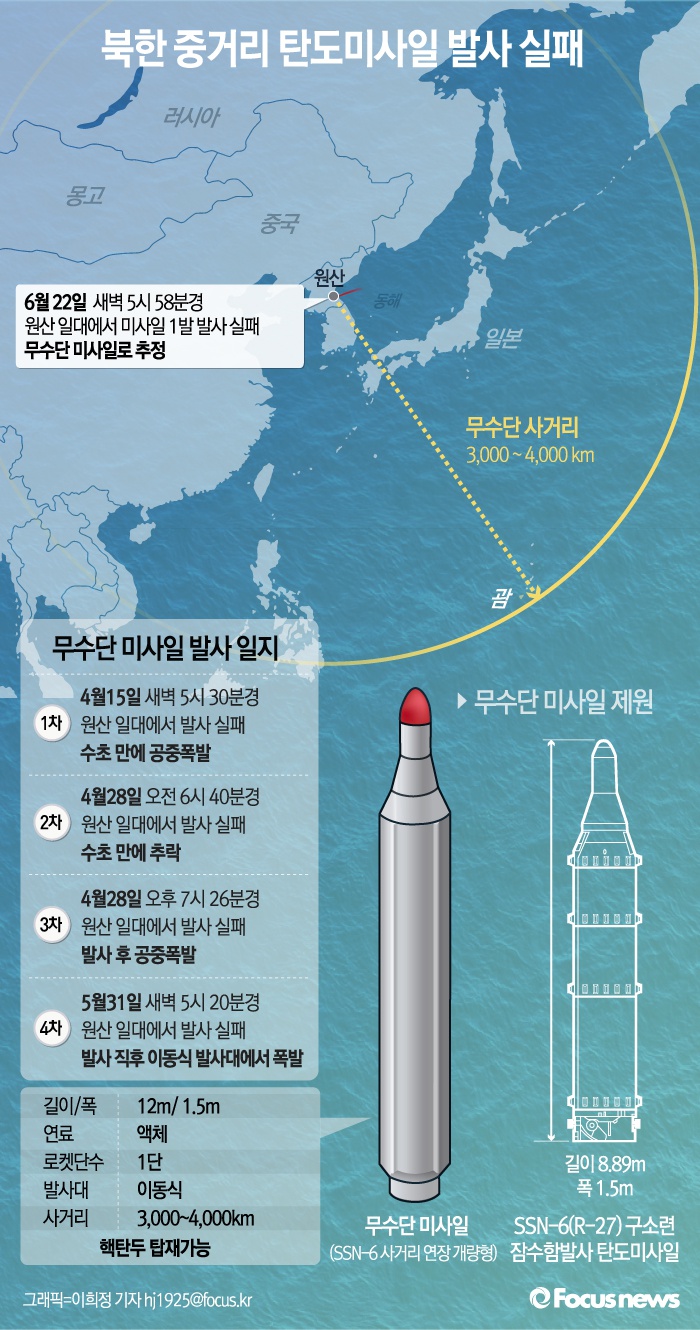 [그래픽] 북한 중거리 탄도 미사일 발사 실패