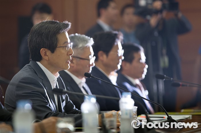 (서울=포커스뉴스) 22일 오전 서울 종로구 정부서울청사에서 열린 '신공항 후속조치 논의 관계장관회의에 참석한 황교안 국무총리가 모두발언하고 있다.