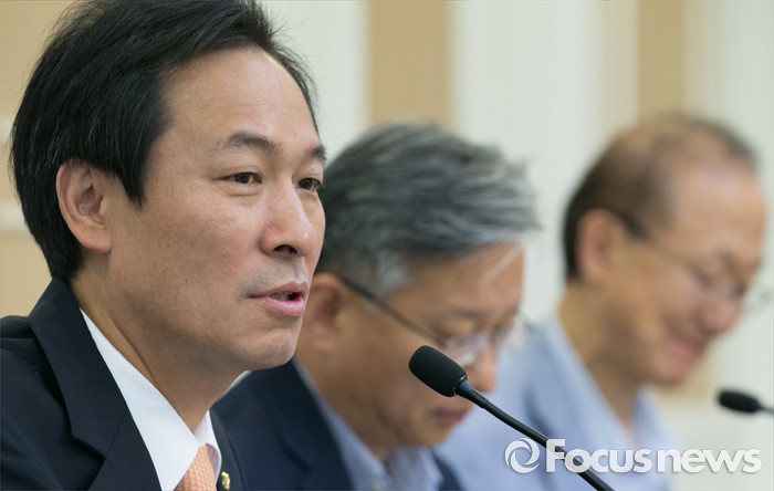 아울러 우 원내대표는 이날 현재 논의 중인 최저임금 산정에 대해 "우리 당의 공식 입장은 두 자릿수 인상이 반드시 돼야 한다는 것"이라며 "최저임금산정위원회에서 더불어민주당의 입장을 잘 반영해 달라"고 말했다.우상호 더불어민주당 원내대표. 사진은 22일 오전 서울 여의도 국회 귀빈식당에서 열린 더불어민주당 국민연금기금 공공투자 추진 특위 2차 회의에 참석한 우상호 원내대표가 인사말을 하는 모습. 2016.06.22 박동욱 기자