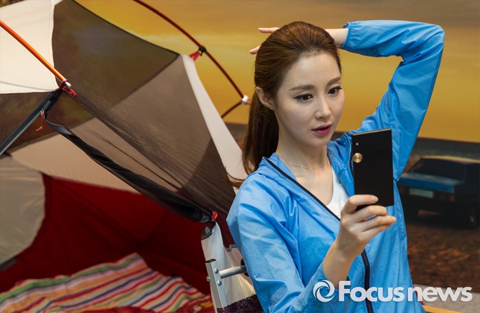 (서울=포커스뉴스) 22일 오전 서울 마포구 팬택 상암사옥에서 열린 'SKY, IM-100' 공개행사에 참여한 한 모델이 신제품을 바라보고 있다.