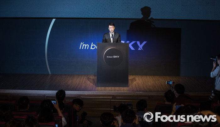 (서울=포커스뉴스) 22일 오전 서울 마포구 팬택 상암사옥에서 열린 'SKY, IM-100' 공개행사에 참석한 문지욱 팬택 사장이 기조 연설을 하고 있다.
