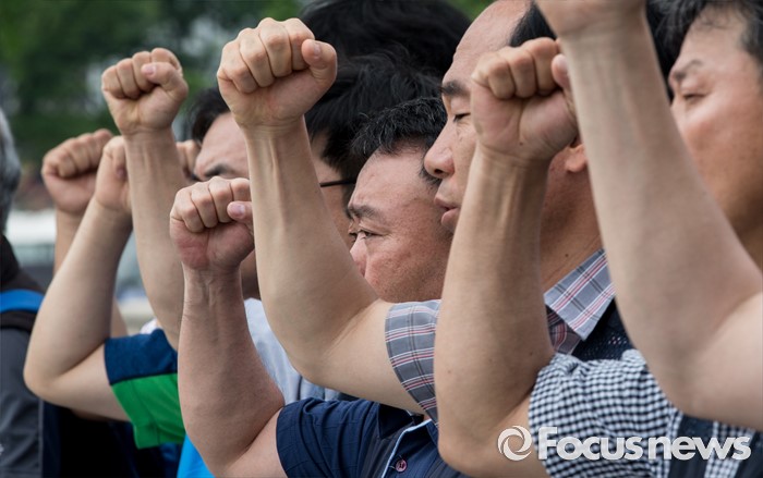 (서울=포커스뉴스) 22일 오전 서울 종로구 정부서울청사 앞에서 민주노총 공공운수노조와 한국노총 공공연맹, 지방공기업연맹이 공동투쟁위원회 출범 및 공동투쟁 선포 기자회견을 하고 있다.