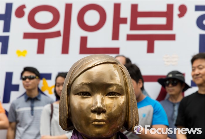 (서울=포커스뉴스) 22일 오후 서울 종로구 옛 일본대사관 앞에서 제1236차 일본군 위안부 문제해결을 위한 정기수요집회가 열리고 있다.