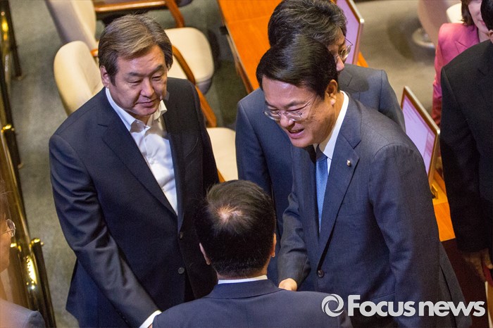 김무성 전 대표는 무소속 복당 결정 이후 '사무총장 경질'을 둘러싼 김희옥 혁신비상대책위원장과 권성동 사무총장의 갈등이 지속되는 데 대해서는 "잘 수습될 것"이라고 말했다.정진석(오른쪽) 새누리당 원내대표가 20일 오전 서울 여의도 국회에서 열린 본회의에 참석해 교섭단체 대표 연설을 마친 뒤 김광림 정책위의장과 대화 하고 있다. 2016.06.20 강진형 기자