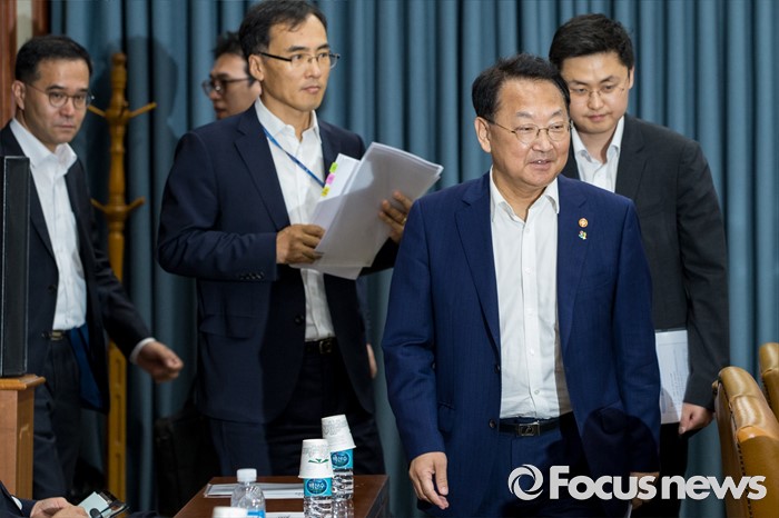 (서울=포커스뉴스) 22일 오후 서울 종로구 정부서울청사에서 열린 경제관계장관회의에 참석한 유일호 경제부총리 겸 기획재정부 장관이 자리로 향하고 있다.