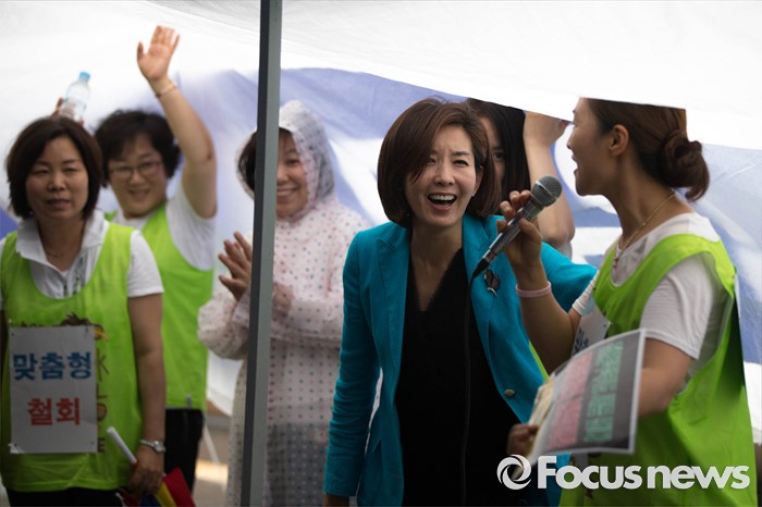 | △ 농성장 찾아 웃음보 터진 나경원 |