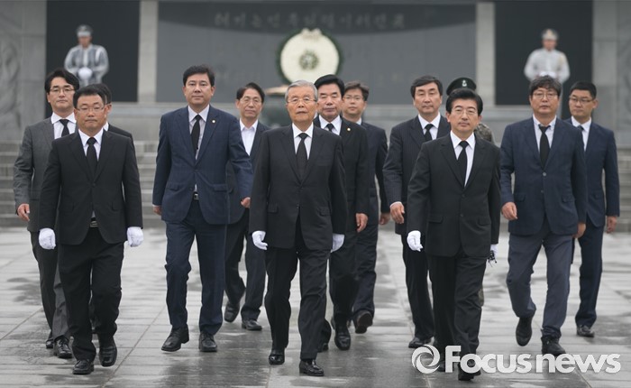 (서울=포커스뉴스) 김종인 더불어민주당 비대위 대표와 의원들이 22일 오후 서울 동작구 국립서울현충원 내 국방부 유해발굴감식단 방문에 앞서 현충탑 참배를 마친 뒤 나서고 있다.