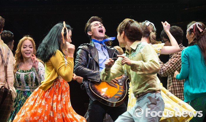 (서울=포커스뉴스) 22일 오후 서울 종로구 홍익대학고 대학로 아트센터에서 열린 뮤지컬 '올슉업' 프레스콜에 참여한 배우 최우혁이 주요장면을 시연하고 있다.