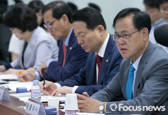 (서울=포커스뉴스) 23일 오전 서울 여의도 국회 의원회관에서 국가유공자 처우 개선 등 논의를 위해 열린 새누리당 민생혁신특별위원회-국가보훈처 간담회에 참석한 이명수 새누리당 민생혁신특위 위원장이 모두발언을 하고 있다.
