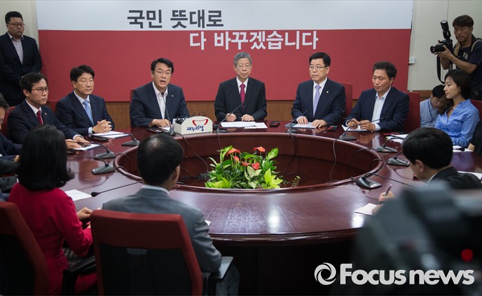 (서울=포커스뉴스) 김희옥 혁신위원장과 정진석 새누리당 원내대표가 참석한 가운데 23일 오전 서울 여의도 새누리당 당사에서 혁신비상대책위원회 회의가 열리고 있다.