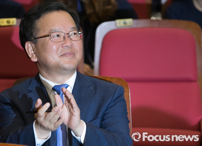 (서울=포커스뉴스) 전당대회 불출마를 선언하고 대권 도전을 시사한 김부겸 더불어민주당 의원이 23일 오전 서울 여의도 국회 의원회관에서 열린 대학생리더십 아카데미에 참석해 박수치고 있다.