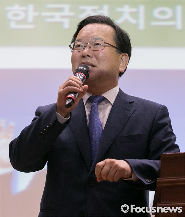 (서울=포커스뉴스) 전당대회 불출마를 선언하고 대권 도전을 시사한 김부겸 더불어민주당 의원이 23일 오전 서울 여의도 국회 의원회관에서 열린 대학생리더십 아카데미에 참석해 특강을 하고 있다.