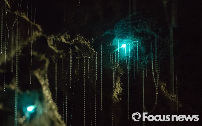 (서울=포커스뉴스) 뉴질랜드 와이토모 동굴앞에서반디불이가푸른 빛을 발광하고 있다.<사진제공=임완호감독>