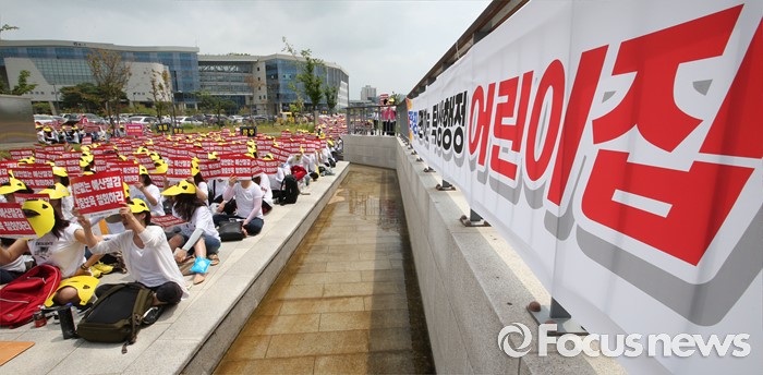 (세종=포커스뉴스) 23일 오전 세종시 정부세종청사 보건복지부 앞에서 충남민간어린이집연합회 회원들이 맞춤형보육 제도개선 및 시행연기 촉구 결의대회를 열고 있다.