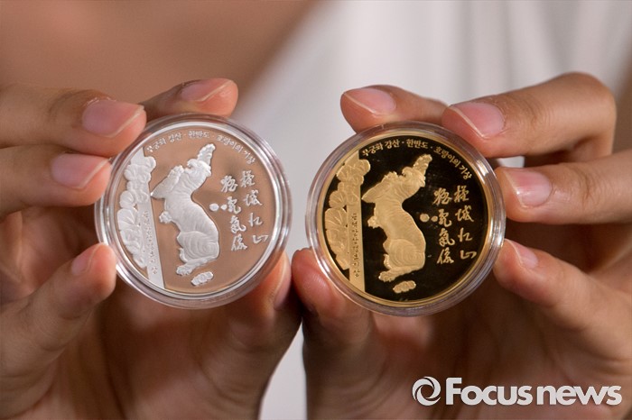 | △ 금빛, 은빛의 한반도 기념메달 |