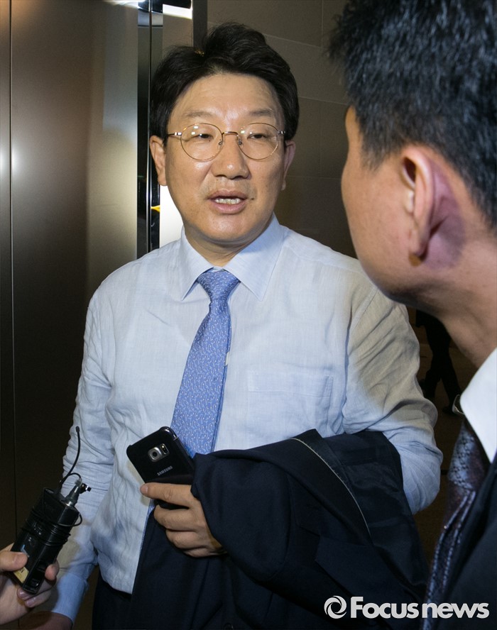 (서울=포커스뉴스) 사무총장직을 사퇴한 권성동 새누리당 의원이 23일 오후 서울 여의도 한 음식점에서 진행된 비상대책위원들과의 오찬 모임에 참석하며 취재진 질문에 답하고 있다.