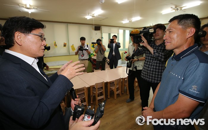 (공주=포커스뉴스) 정진엽 보건복지부 장관이 23일 오후 충남 공주시 신관동 동심어린이집을 방문해 어린이집 집단휴원 상황을 점검하고 있다. 이날 전국민간어린이집연합회 소속 어린이집 5185곳이 자율등원 형태로 운영됐다. 정 장관이 방문한 동심어린이집도 총원 93명 중 13명만 자율등원 했다.