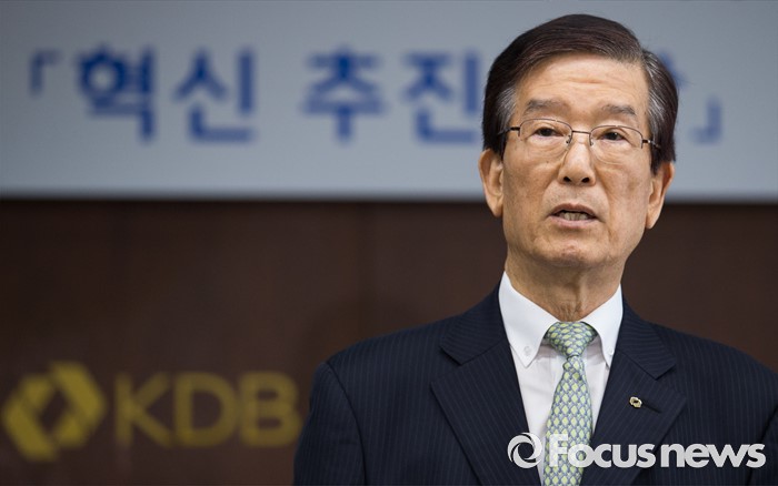 (서울=포커스뉴스) 23일 오후 서울 영등포구 KDB산업은행 본점에서 열린 산업은행 혁신 추진방안 기자간담회에 참석한 이동걸 KDB산업은행 회장이 혁신 추진방안을 발표하고 있다.