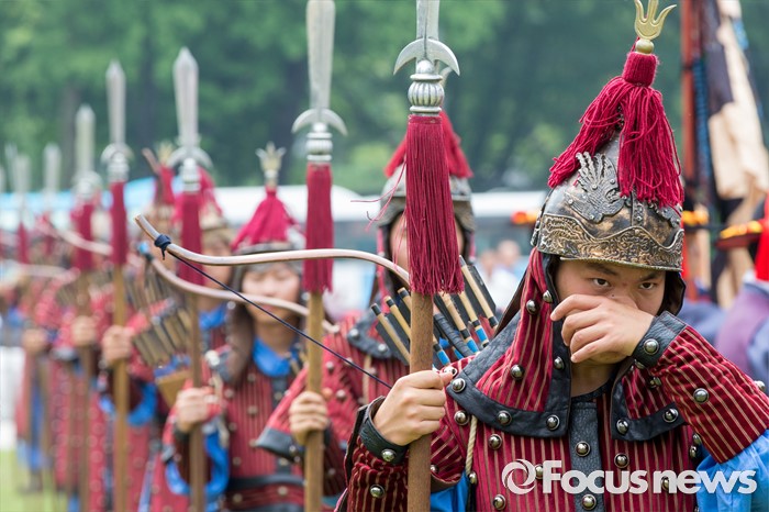 (서울=포커스뉴스) 23일 오후 서울광장에서 열린 '왕궁수문장 20주년 기념행사'에 참석한 관계자가 땀을 닦고 있다.
