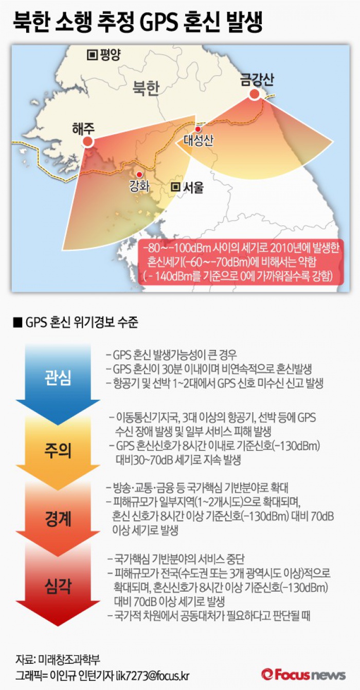| △ [그래픽] 북한 소행 추정 GPS 혼신 발생 |