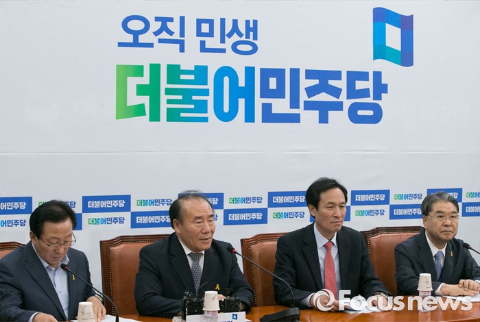 (서울=포커스뉴스) 23일 오후 서울 여의도 국회에서 열린 누리과정 및 지방교육재정 해결 위한 전국시도교육감협의회와 간담회에 참석한 장휘국 전국시도교육감협의회장(광주시교육감)이 인사말을 하고 있다. 왼쪽부터 민병희 강원도교육감, 장 회장, 우상호 더불어민주당 원내대표, 이재정 경기도교육감.