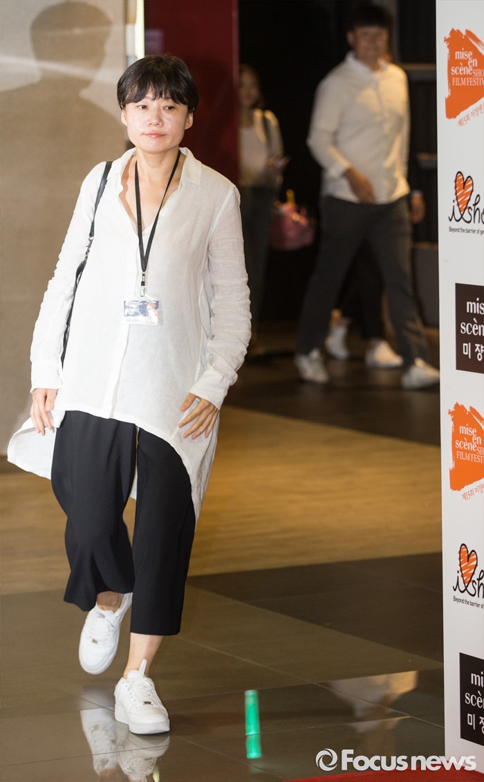 (서울=포커스뉴스) 23일 오후 서울 마포구 롯데시네마 홍대입구점에서 열린 '제15회 미쟝센 단편영화제' 개막 포토월 행사에 참여한 이경미 감독이 포토타임을 위해 이동하고 있다.